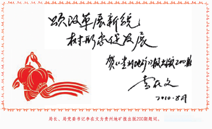 局长、局党委书记李在文为贵州地矿报出版200期题词