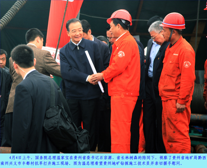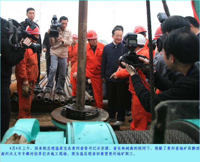 温家宝总理视察我局黔西南州兴义市丰都村抗旱打井施工现场