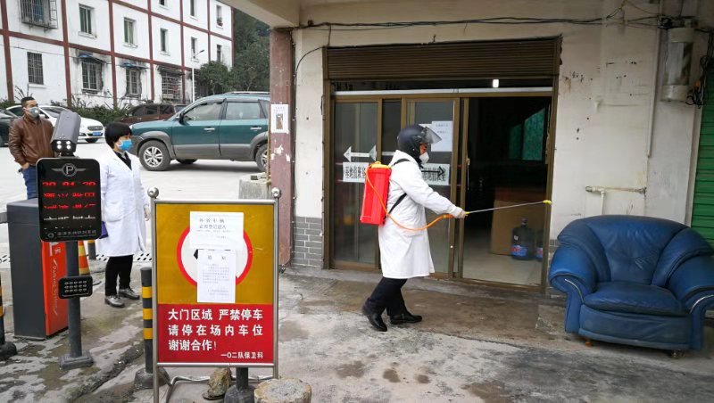 1月29日,根据中央、贵州和遵义市应对新型冠状病毒感染肺炎疫情联防联控工作相关文件要求,贵州地矿102地质队切实履行“健康守门人”和“站岗放哨”职责。大队值班总工程师刘志臣率领值班人员姚远杰、樊高顺、李永章等,会同社区干部张永荣一起走进社区,走进有从重庆疫区返回家中的居民住宅进行消毒处理,还对基地门卫室、职工医院、第一办公区的楼梯间、电梯间这些人流量多的地方进行消毒处理。