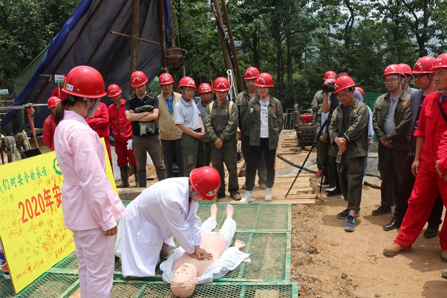 113地质队邀请医护人员进行心肺复苏实操讲解