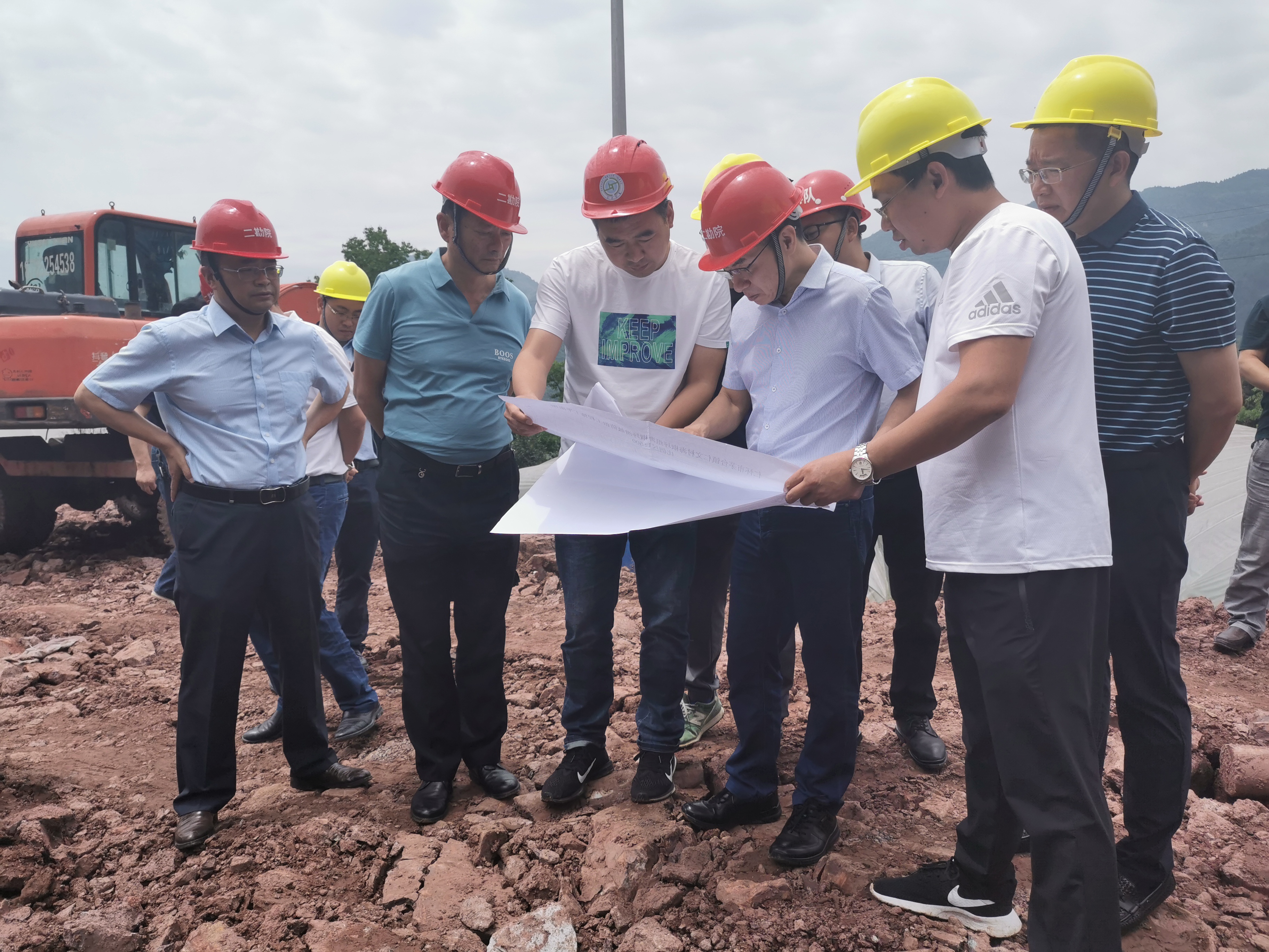 图为杨兵副厅长(右三)在海椒坪施工现场指导