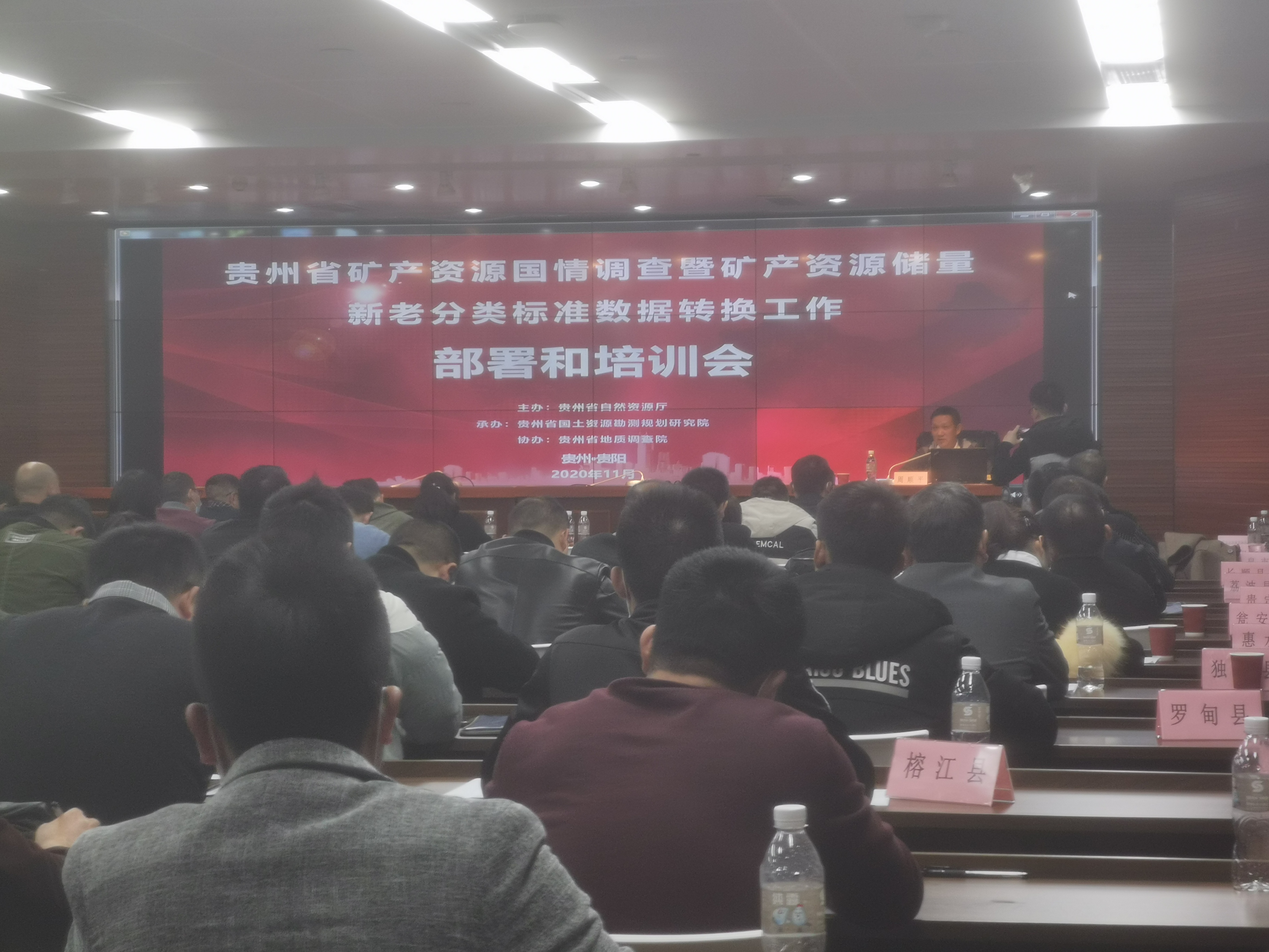 11月5日,由贵州省自然资源厅主办、贵州省国土资源勘测规划研究院承办、贵州省地调院协办的贵州省矿产资源国情调查暨贵州省矿产资源储量新老分类标准数据转换工作部署和培训会在贵州省地质科技园成功召开,全省共130余位专家代表参加了会议。