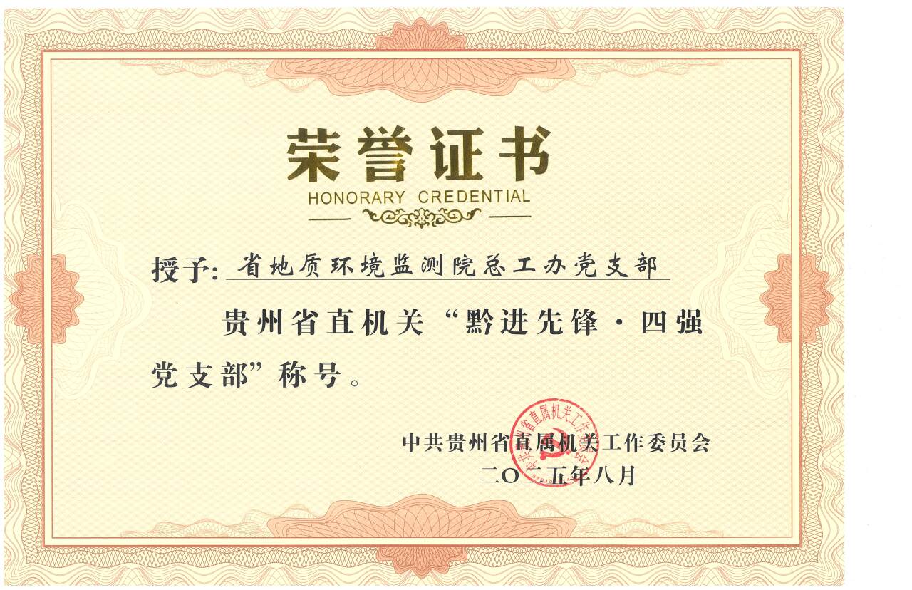 近日,我局环境院总工办党支部荣获2025年省直机关“黔进先锋·四强党支部”称号。