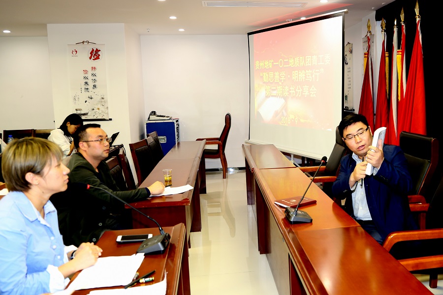 近日,贵州地矿102地质队团青工委组织开展“勤思善学·明辨笃行”暨2018年第二期读书分享活动,4个团青支部40余名团员和青年干部职工参加。