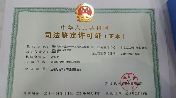 贵州地矿113地质队添司法鉴定新资质