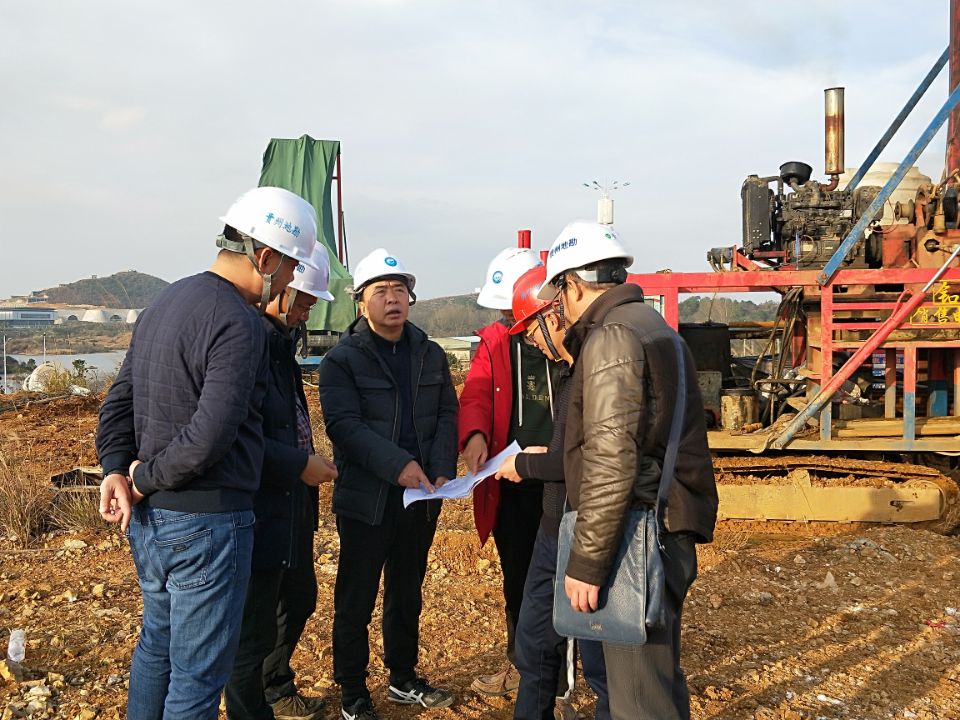2020年1月2日下午,贵州地矿111地质队党委书记、队长韩忠强,副队长严召进一行对该队正在实施的贵安新区时代城市花园、智慧城市花园两岩土工程勘察项目进行现场安全质量检查。