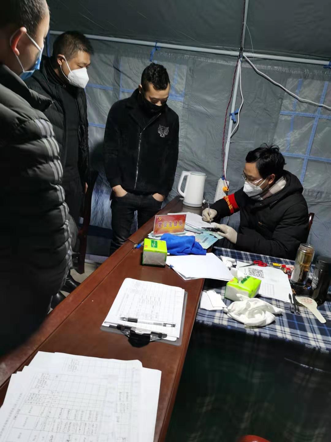笔者在大湾收费站卡点了解到,都香高速公路大湾站是二塘镇和大湾镇交界处的重要出入口,在疫情防控的关键时刻,经与两镇党委协商,决定设立该卡点,成立临时党支部,由贵州地矿局同步小康工作队副队长、挂任钟山区委常委、副区长程孝华担任临时党支部书记,进一步加大该卡点抗击疫情的组织、统筹、领导力度,以保障两镇近10万人生命健康安全。在该卡点笔者看到,驻村干部和卡点党员庄严宣誓后,冒着大雪和严寒坚守岗位,对往来车辆进行检查,凡本地车辆驾乘人员量体温和了解行进经历合格后予以放行,凡外地车辆无特殊情况一律劝返。