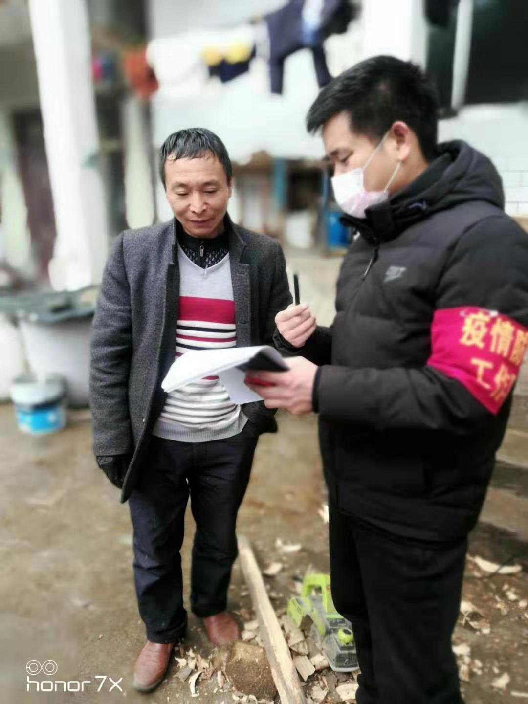 返岗的驻村干部回村后,一是立即帮助包村干部成立疫情防控工作领导小组,迅速开展疫情防控各项工作。二是开展拉网式摸排。对武汉、湖北等外地返乡人员及其直接接触人员开展拉网式排查近70000人次,并及时建立各类台账。三是开展疫情防控宣传。向村民开展疫情防控提示、肺炎防控知识、预防注意事项等入户宣传,张贴《居家观察“十个做到”》《医学观察“十条措施”》《村民防护“十个注意”》12000多份,宣传标语120余幅,发放宣传单12000余份。劝导嫁娶延期26期,丧事简办5起;每天利用村应急广播、小喇叭、村民微信群开展疫情防控宣传。四是开展消杀工作。每天坚持对办公区域、会议室、卫生室等公共区域进行消毒杀菌。五是建立联防联控包保工作制度。以脱贫攻坚决战队组织构架,以战斗小组为单元,主动出击做好疫情监测、排查和宣传工作。六是设置劝导点。相继在所帮扶的村寨设置卡点99个,对过往的10000余车辆驾乘人员、来往人员量体温。