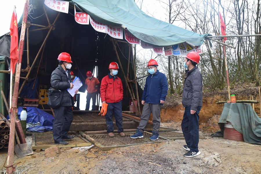 据了解,该队先后于2月11日和2月17日两次召开会议,对科学有序推进项目复工复产作出安排部署。强调按职责分工梳理工作,推进落实落细。目前,包括阶段性资料整理在内的复工复产项目已达32个,其中野外项目包括疫情防控期间地灾技术保障工作、会同务川县自然资源局对该县丹砂街办事处珍珠社区小溪至文家湾中段县道(X350)地质灾害进行应急调查、会同习水县自然资源局对大坡镇岩角坪地灾点进行应急调查、遵义播州区泮水镇兴安煤矿钻探施工野外踏勘、遵义锰矿钻探施工钻孔位选定、瓮安大坪铅锌矿、磷矿钻孔(ZK607)机场复工、遵义汇川区地灾群测群防监测设备安装移交工作等。