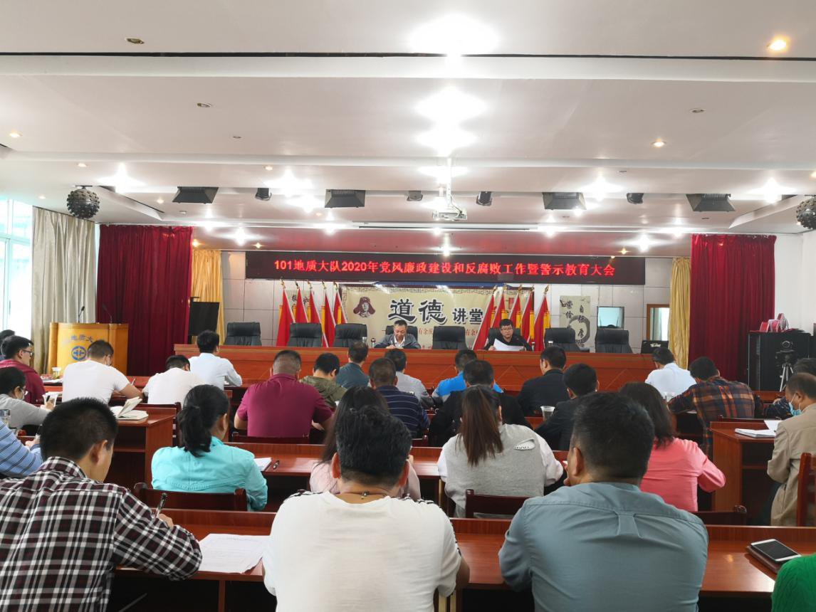 4月30日,贵州地矿101地质队召开2020年党风廉政建设和反腐败工作暨警示教育大会。队党政领导班子、中层干部及部门负责人、党支部书记、支部纪检成员、全体机关人员,共53人参加了会议。