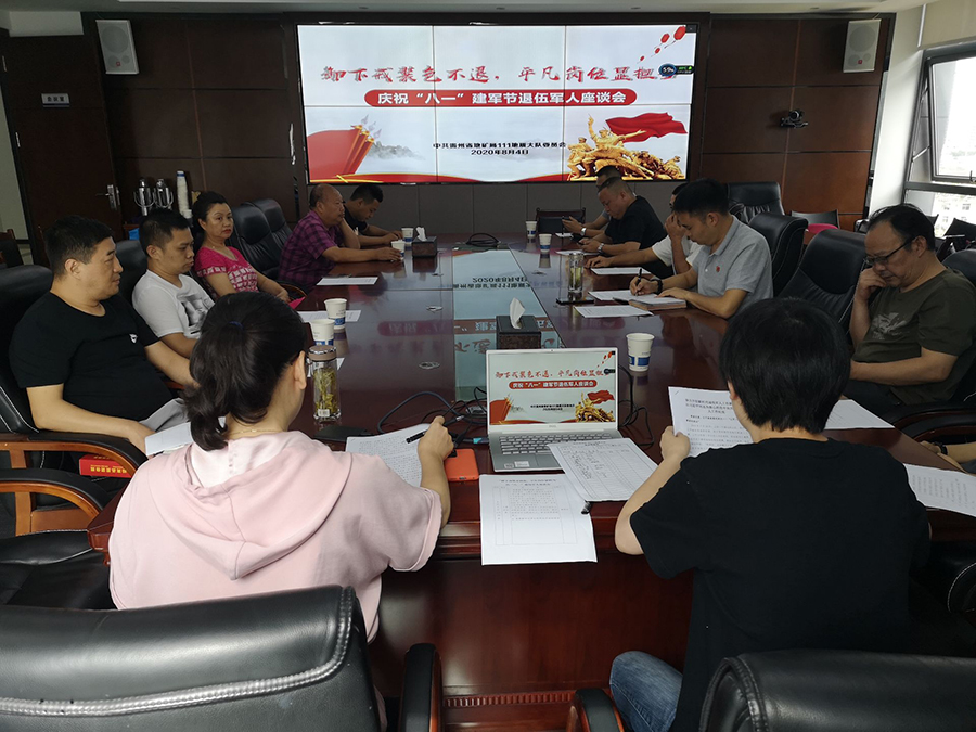 近日,在建军节到来前夕,贵州省地矿局各基层单位积极组织召开退役军人座谈会。退役军人代表欢聚一堂,回顾军旅生涯,共叙光荣岁月,共同纪念中国人民解放军建军93周年。