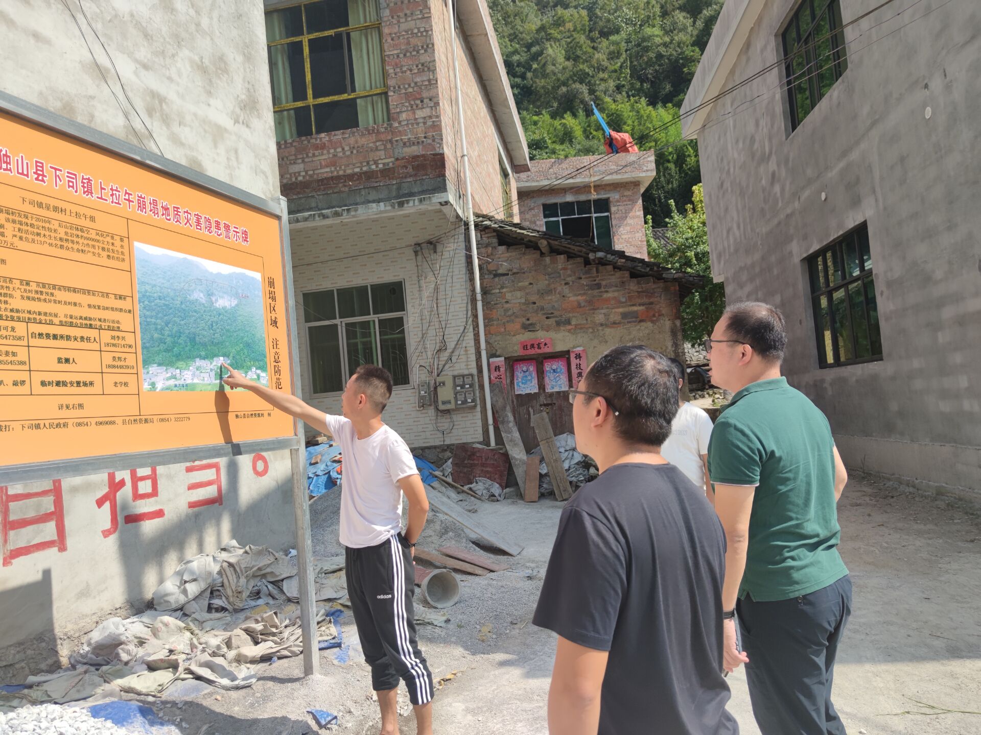 当天上午,检查组一行到下司镇董汪崩塌及上拉午崩塌点检查地质灾害防治工作。县自然资源局地灾办、104地质队驻县技术保障组等相关人员陪同检查。检查组详细询问了各处地灾的规模、危害程度、监测手段及防治措施。下午,检查组在独山县自然资源局召开座谈会,104地质队驻县人员对独山县的地灾排查及防治工作、协助抢险救灾等情况做了详细汇报。