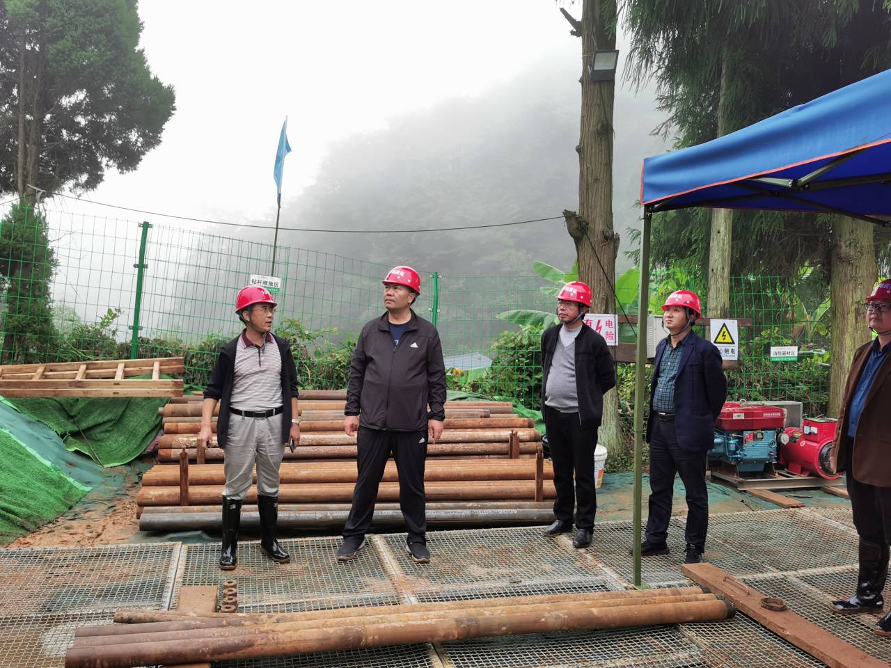 杨光成副局长一行首先到正在施工的ZK1304钻井施工现场进行检查,对钻井技术进行了详细了解,对机台安全、和绿色勘查等作了具体要求。在听取有关负责人对项目的相关概况进行汇报后,杨光成对项目的野外工作及其取得的初步成果给予了充分肯定。同时表示,州、县自然资源局将积极支持该项目工作,协助解决施工中出现的土地纠纷等问题,并要求101地质大队认真组织项目施工,按合同约定时间提交地质勘查报告。