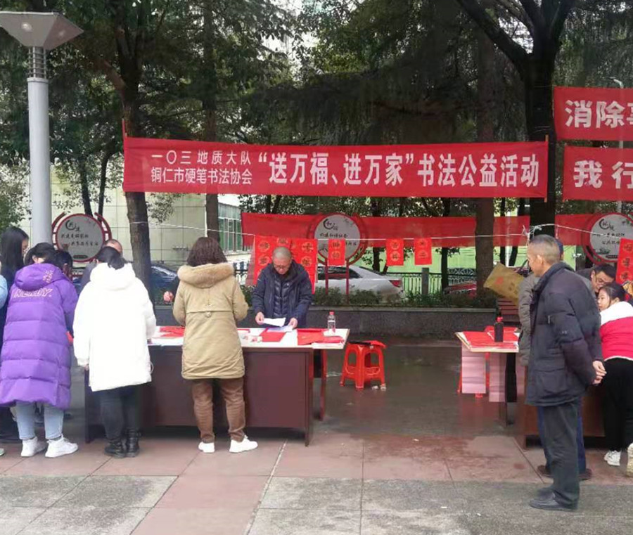 近日,贵州省地矿局103地质队工会联合铜仁市硬笔书法协会,在该队广场上为干部职工及小区居民写春联送祝福,这是该队连续第三年开展“送万福进万家”书法公益活动。