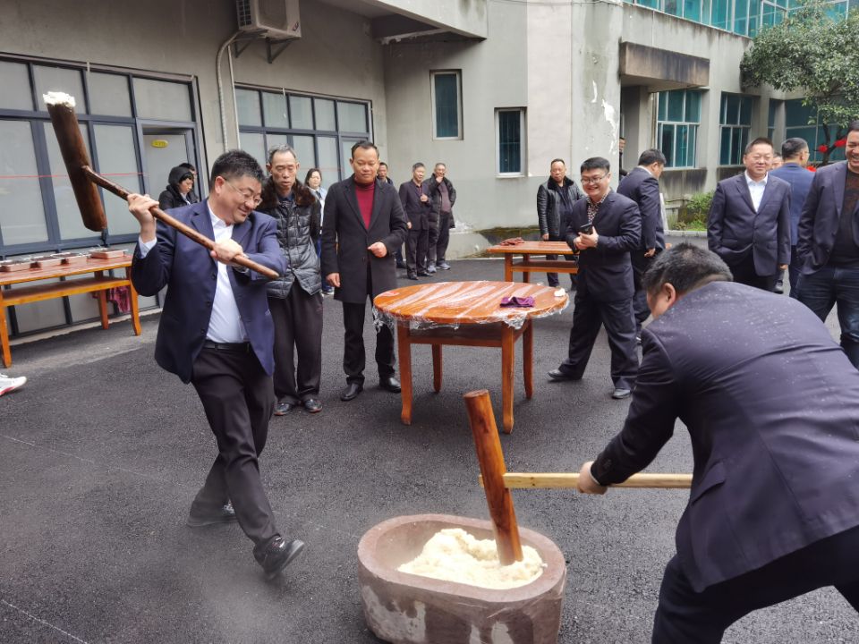 办公楼前,“打糍粑”比赛正在如火如荼的开展,工作人员将蒸好的糯米倒入五个碓窝,职工撸起袖子,卖力的轮着木锤,“嘿、哈”的附喝声你来我往,现场其乐融融,笑声不断,年味十足。女同志们也不甘示弱,除了包豆沙馅这种细活儿之外,也扛起了大锤,拿出了“力拔山兮气盖世”的魄力。香糯的糍粑整齐摆放在桌上让人垂涎欲滴,让广大职工在感受节日温暖的同时,又体验到了传统文化。