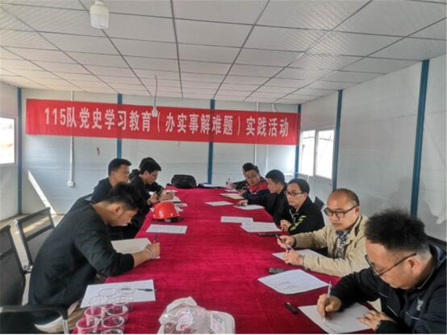 3月17日,省地矿局115地质队党委书记带队到项目一线,开展“党史学习暨办实事解难题”主题教育活动,为生产一线难题提出切实可行的解决办法、方案,该队20余名技术干部参加了此次学习活动。