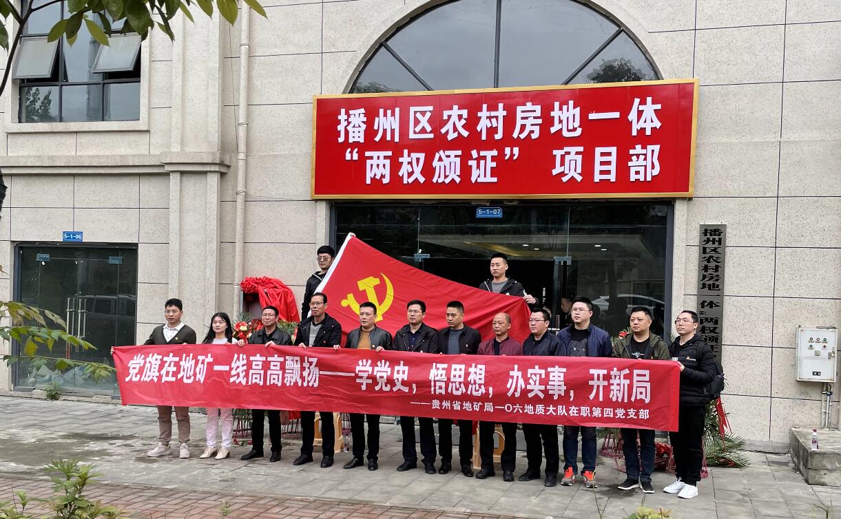 为加强党建与业务工作的有机结合,破解“两张皮”现象,日前,贵州地矿106队在职第四党支部到播州区两权颁证项目实施现场,以了解项目进展情况,安全、质量检查,技术交底、上党课等形式,创新开展“让党旗在地矿一线高高飘扬暨学党史、悟思想、办实事、开新局”主题党日活动。