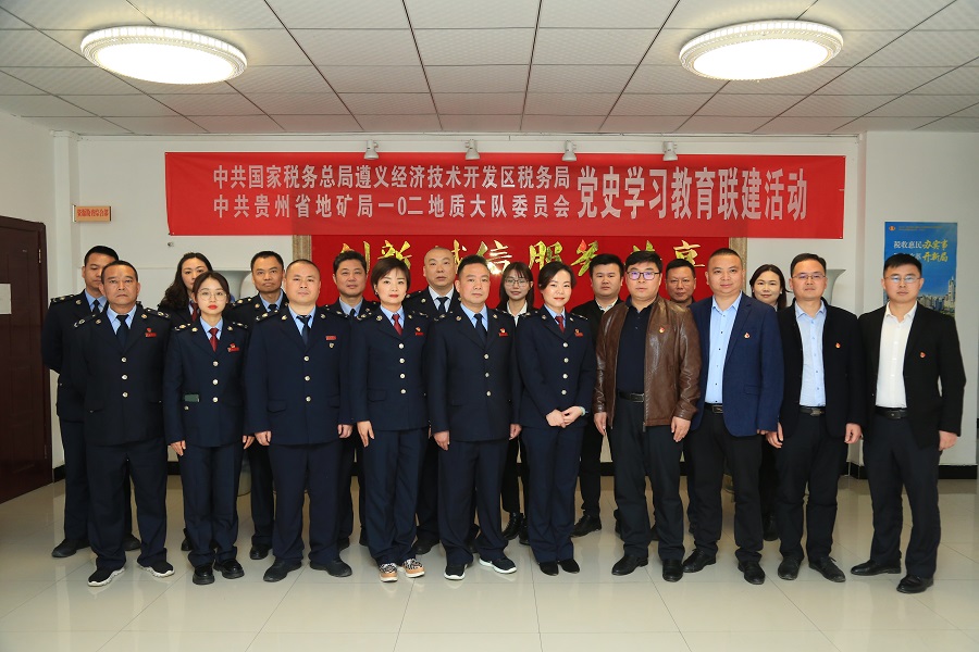 4月19日,国家税务局遵义经济技术开发区税务局党委委员、机关党委书记毛洁一行11人到省地矿局102地质队开展党史学习教育联建。