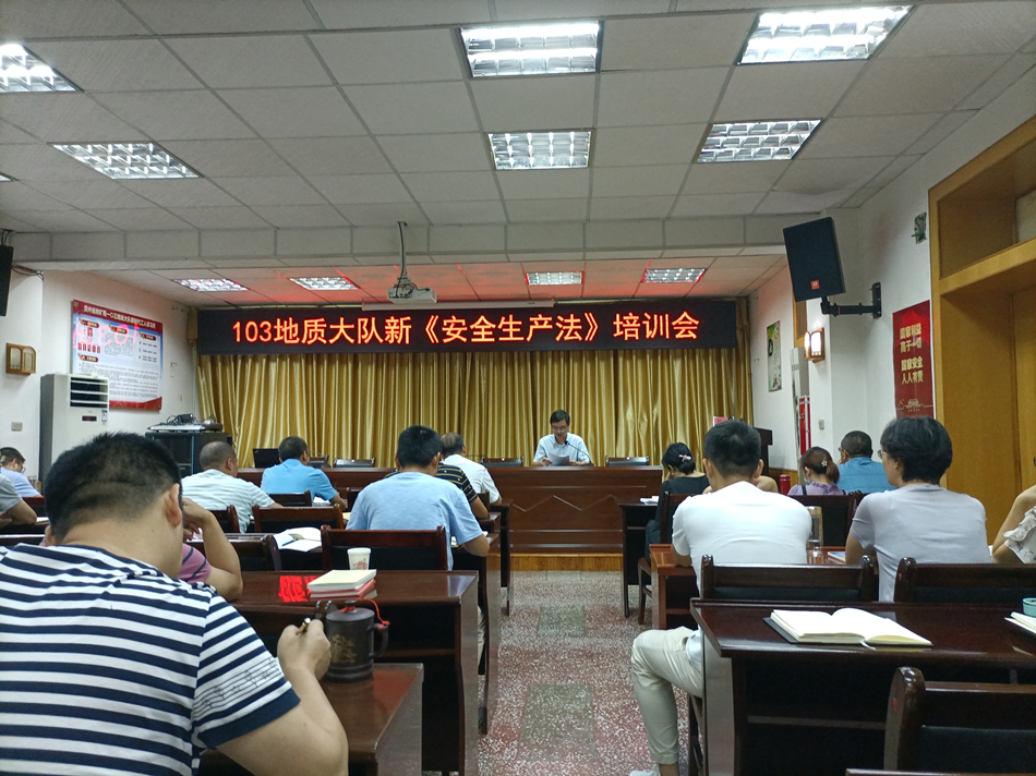 8月20日,省地矿局103地质队组织举行新《安全生产法》专题培训会。该队领导、二级单位负责人、科室负责人、专(兼)职安全员、机关全体人员参加培训。