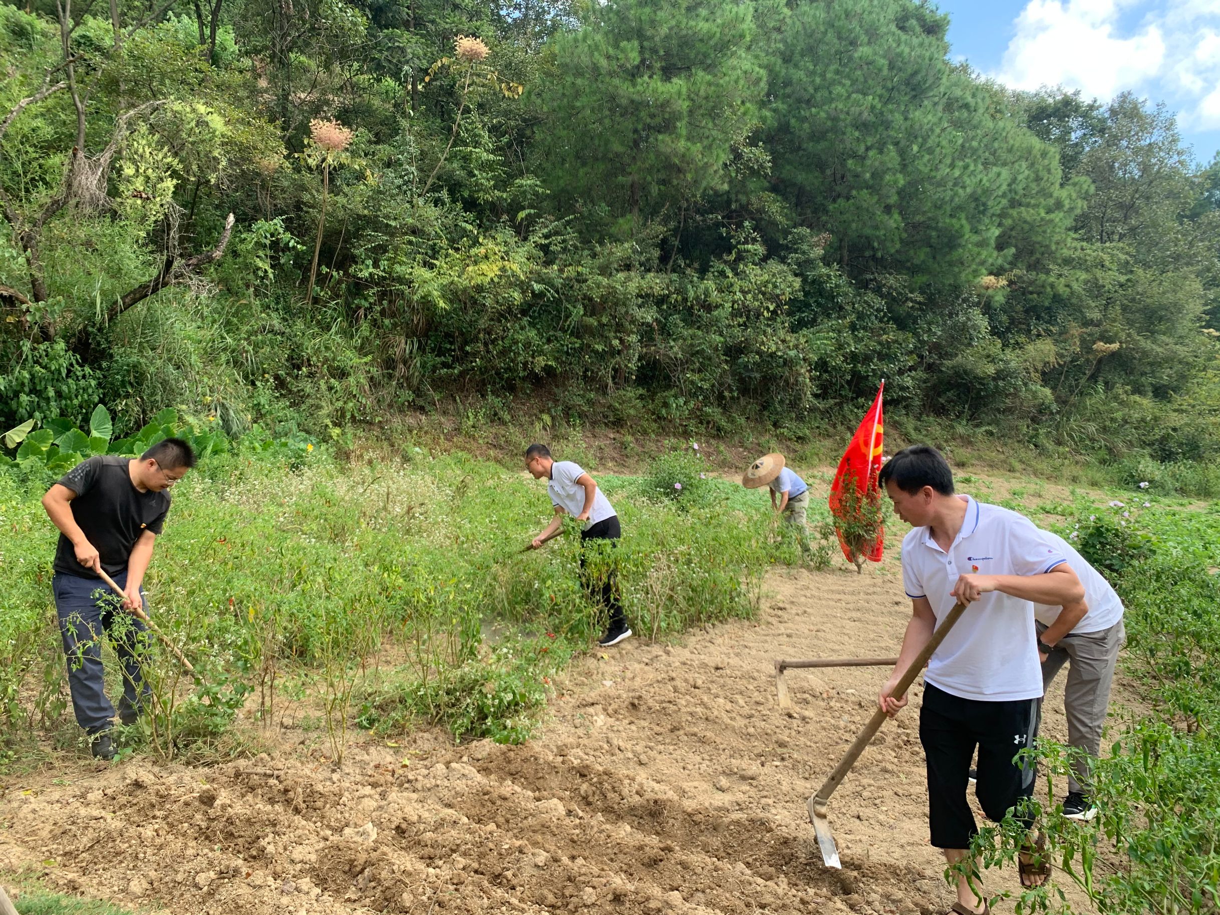 党员干部顶着烈日在田间劳作,帮助劳动力不足的贫困户除草、翻地、浇水,用实际行动为农户解决生产生活困难,通过了解民生、服务民生,为帮扶户除草一亩、翻地五亩,并积极帮助农户开展秋季种植,得到了农户和“村支两委”的一致好评。