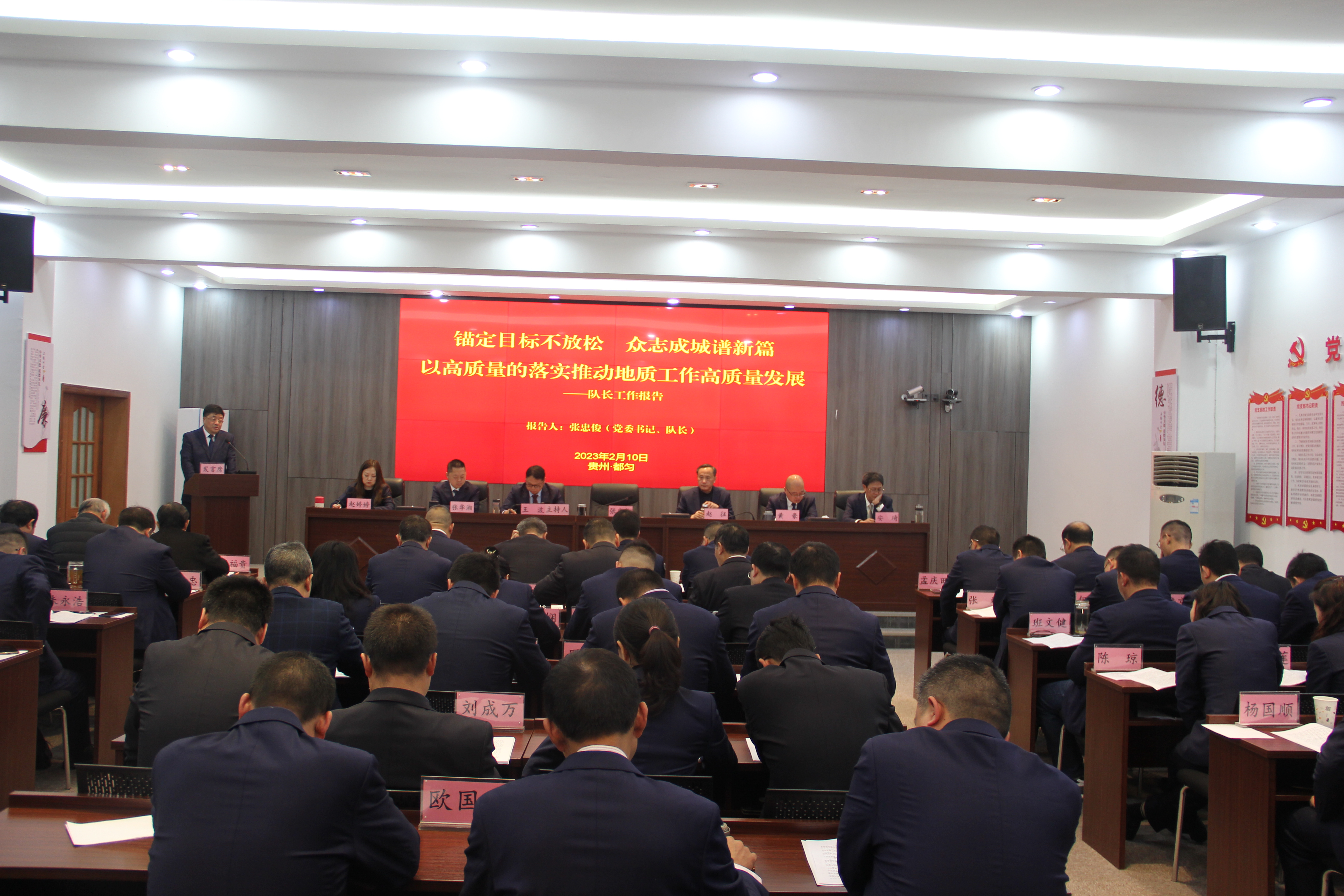 会上,党委主要负责同志作了题为《锚定目标不放松众志成城谱新篇以高质量的落实推动地质工作高质量发展》的队长工作报告,总结了大队2022年各项工作成效,全面安排部署了大队2023年工作。2022年,104地质队抓项目促生产,地勘经济发展稳中有进。强化主责主业,资源能源保障再立新功。心系人民群众,地质灾害治理扎实有效。深化服务质量,生态文明建设成果丰硕。完善规章制度,基础管理水平持续提升。践行为民初心,和谐地矿谱出新篇章。抓重点求创新,党的建设水平全面提升。