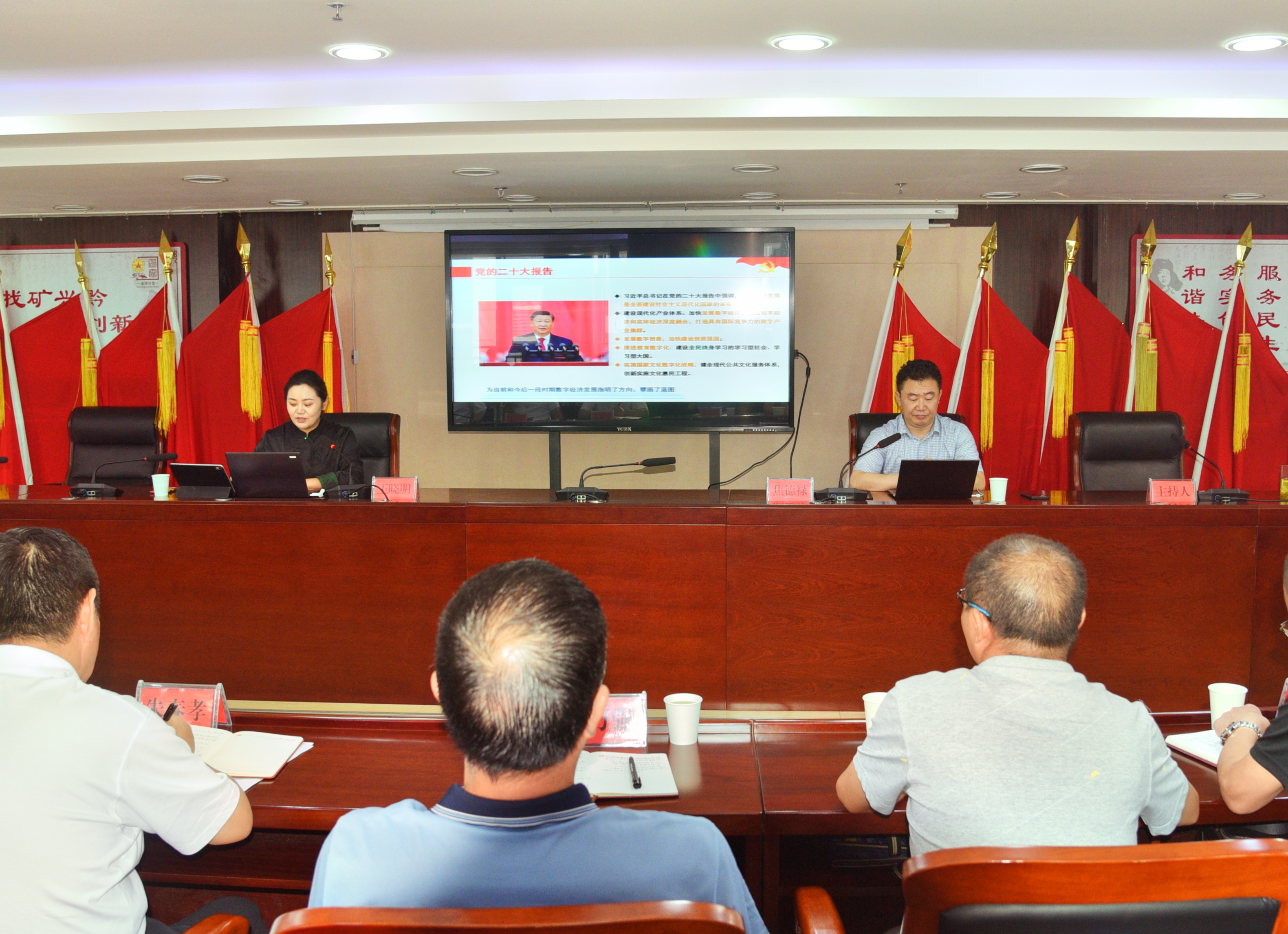 7月25日下午,省地矿局以“新时代学习大讲堂”为载体开展“理论宣传二人讲”,邀请贵州省大数据局总工程师焦德禄、贵阳市大数据发展管理局展示中心副主任王晓明共同作“在实施数字经济战略上抢新机 加快建设数字经济发展创新区”专题讲座,讲座由省地矿局党委委员、副局长朱春孝主持。