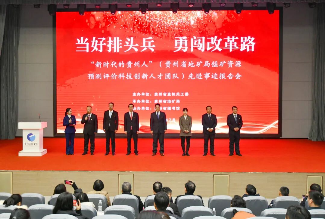 这是2月14日下午在省图书馆举行的“当好排头兵 勇闯改革路——‘新时代的贵州人’(贵州省地矿局锰矿资源预测评价科技创新人才团队)先进事迹宣讲报告会”上的一幕。报告会上,覃永军、杨炳南、谢小峰、张夏林、张孝丽等5名讲述者深情讲述了团队发挥党员先锋模范作用,投身贵州锰矿事业,努力攻坚找矿的感人故事和先进事迹。