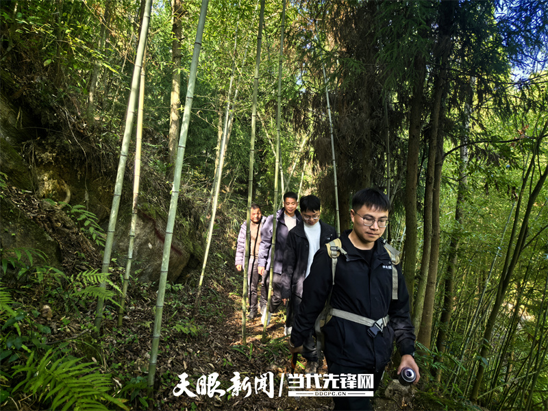 小雪时节,黔南州福泉市道坪镇,贵州省地质局所属核资源地质调查院技术团队的队员们穿梭在一片竹林深处开展地质填图工作。途中,一行人不时停下脚步,手拿地质锤敲打岩石,蹲下仔细观察岩性。