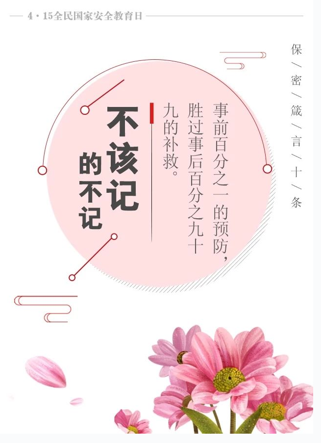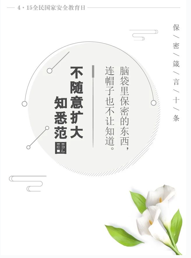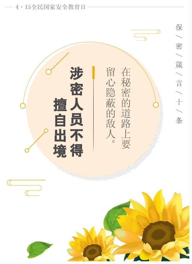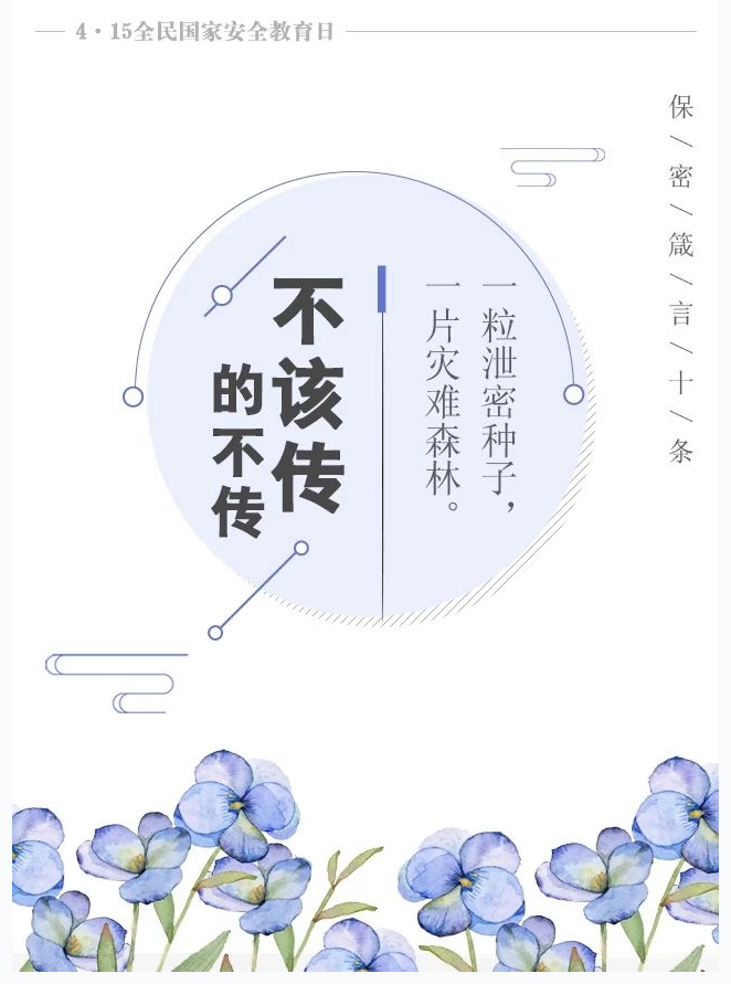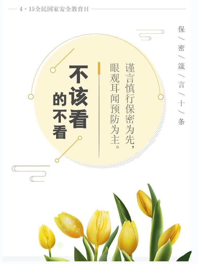 今年我国迎来了第5个全民国家安全教育日。国家利益高于一切,保守秘密人人有责,为此,“保密观”推出十条“保密箴言”,希望大家将警钟长鸣耳边,将保密牢记心间。